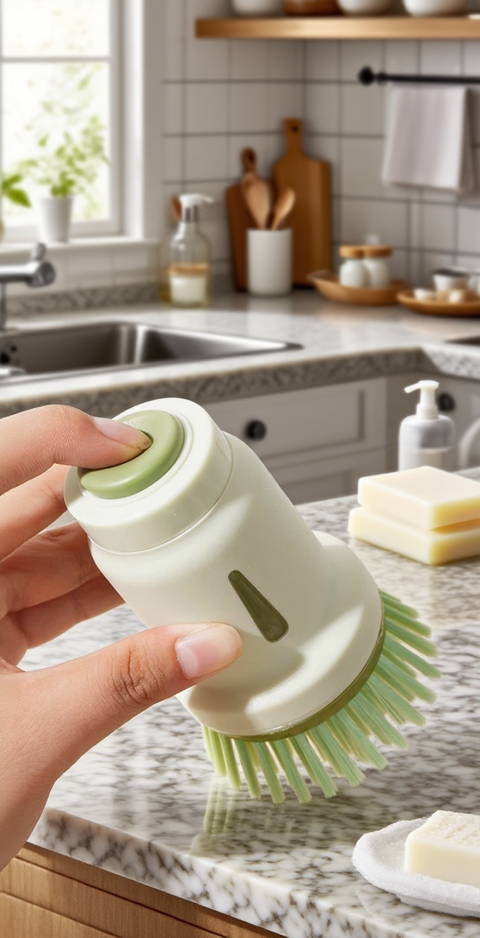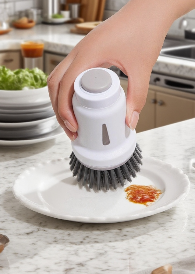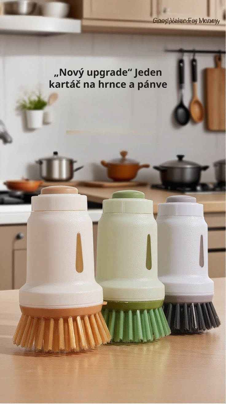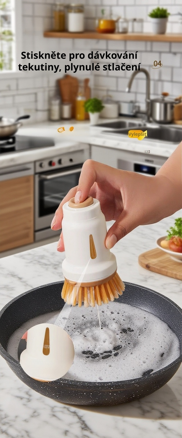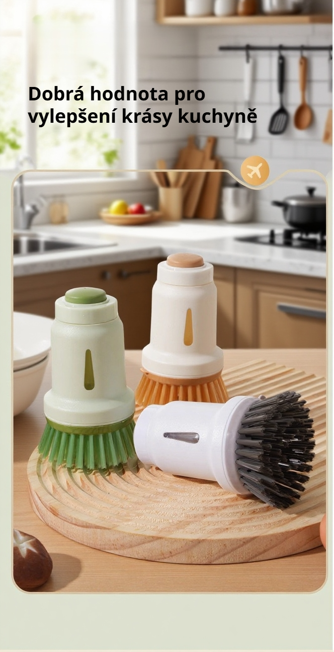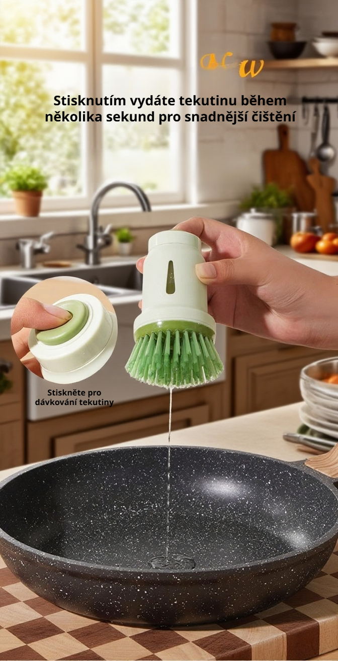 Kuchyňský kartáč na mytí nádobí s dávkovačem saponátu